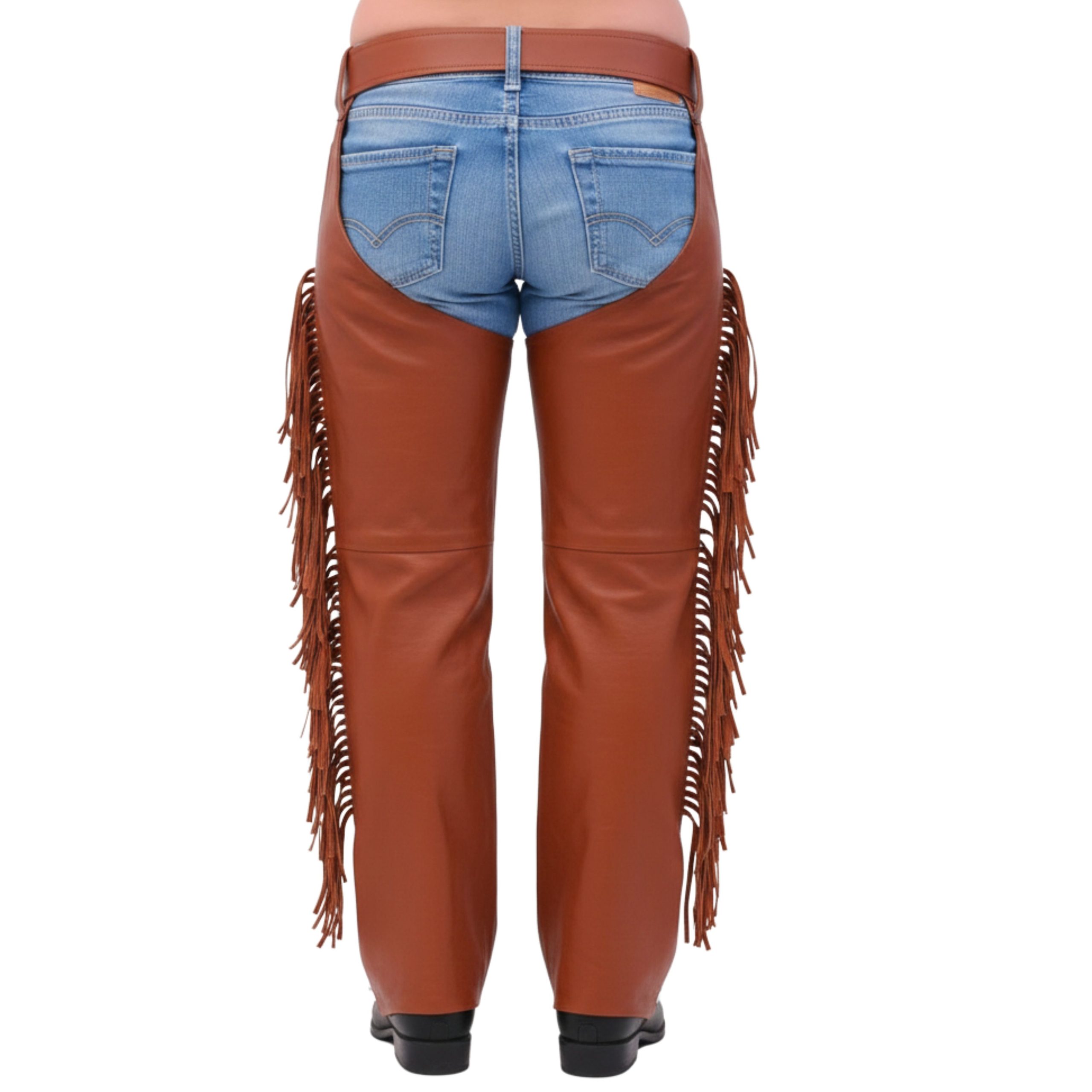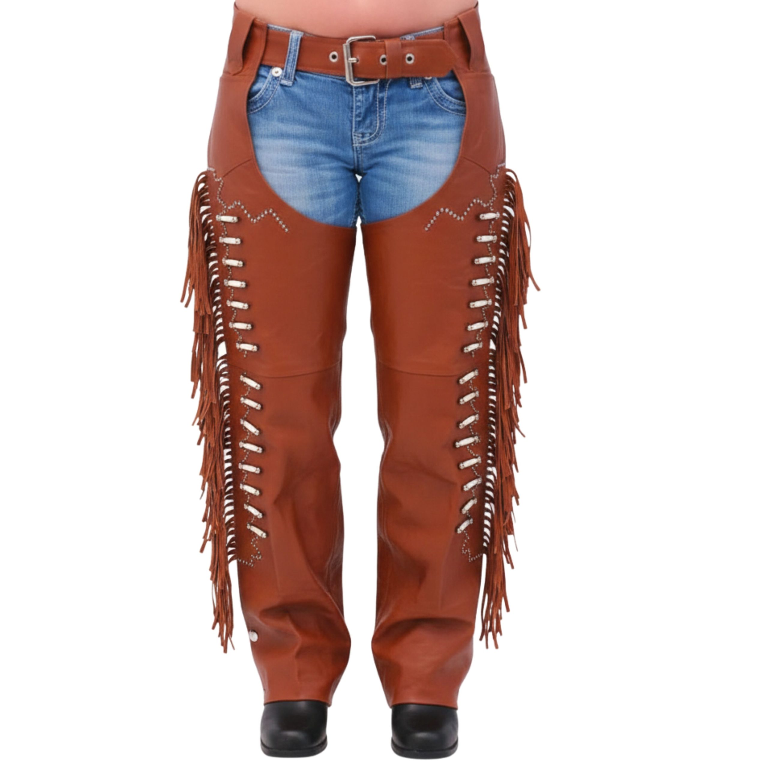 Made from high-quality brown leather, these chaps feature side lacing with fringe detailing, enhancing both aesthetic appeal and flexibility. Whether you’re riding through open plains, attending a rodeo, or hitting the highway, these chaps deliver the comfort, durability, and style you need. Equipped with an adjustable waist belt and snap closures, they provide a secure and customizable fit. The heavy-duty stitching and reinforced seams ensure long-lasting wear, making them a reliable companion for every adventure.